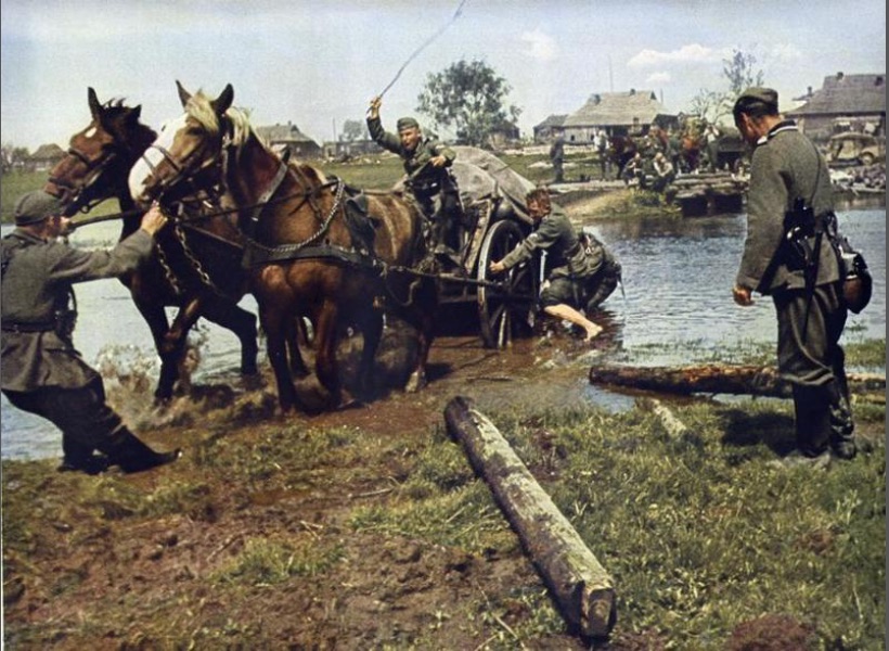 In spite of the enormous array of motor vehicles at the time of Barbarossa, the number of motorized/armoured divisions was relatively small. The 1941 Wehrmacht still had to rely on horses.