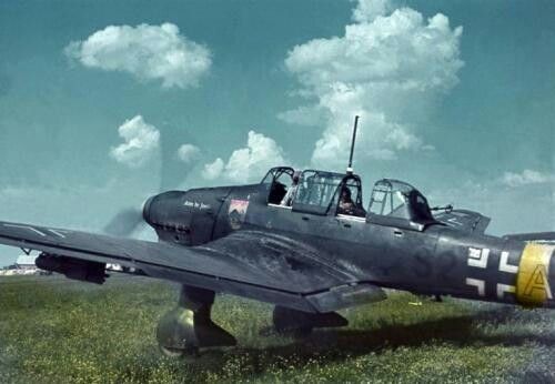 El Junkers Ju-87 es el famoso Stuka (acrónimo de Sturzkampfflugzeug o «avión de ataque en picado)». En sí mismo simboliza la esencia de la guerra relámpago, mejor que ninguna otra máquina del conflicto 1939-45. La imagen del Stuka evoca a la vez admiración por su precisión y el horror de la nueva forma de hacer la guerra. Usado con tremenda contundencia en las campañas de Polonia y Francia, es probado, no obstante, antes en la Guerra Civil Española (1936-39) adonde llega como un proyecto altamente secreto. Pero su imagen quedará en entredicho especialmente en la Batalla de Inglaterra, donde mostrará su vulnerabilidad frente a una oposición de caza efectiva. Al fin y al cabo ya es un modelo lento en 1940 y su capacidad defensiva la proporciona tan sólo un ametrallador trasero. Aún así, la infantería alemana siempre tendrá buenas palabras para esta máquina que será «la artillería volante» que les abre el camino a través de las defensas adversarias.