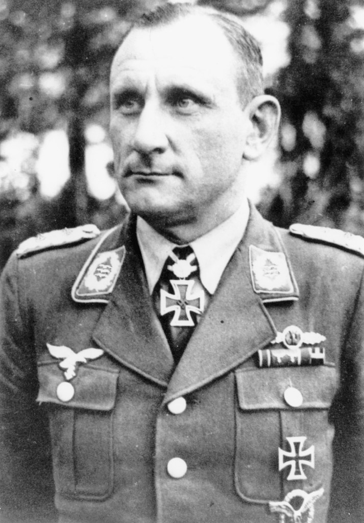 Oberst Oskar Dinort, Geschwaderkommodore al mando del Sturzkampfgeschwader 2 ‘Immelmann’, desde el 15/10/1939 al 15/10/1941. Dinort es el primer comandante de esta famosa unidad. Recibe la Cruz de Caballero de la Cruz de Hierro el 20/06/1940 durante la campaña en el oeste y se convierte así en el primer piloto de Stuka en recibir las Hojas de Roble para su Cruz de Caballero el 14/07/1941 durante la campaña de invasión de la URSS. Sobrevive al conflicto con el empleo de Generalmajor.